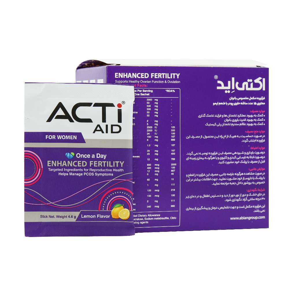 ساشه اکتی اید بانوان ابیان دارو یک مکمل تغذیهای برای بانوان است که به طور ویژه برای حمایت از سلامت باروری طراحی شده است. این محصول به بهبود عملکرد تخمدانها و تسهیل فرایند تخمک گذاری کمک مینماید. ساشه اکتی اید بانوان با ترکیبات منحصر به فرد خود به زنان در بهبود قدرت باروری و مدیریت علائم سندرم تخمدان پلی کیستیک کمک شایانی میکند. این مکمل به ویژه برای کسانی که به دنبال تقویت سلامت تولید مثل خود هستند، توصیه میشود. در نظر داشته باشید خرید قرص امگا 3 و مصرف آن در کنار این مکمل با هدف تقویت سلامت تخمکها و کاهش خطر نقایص مادرزادی جنین، میتواند اقدامی هوشمندانه باشد.
