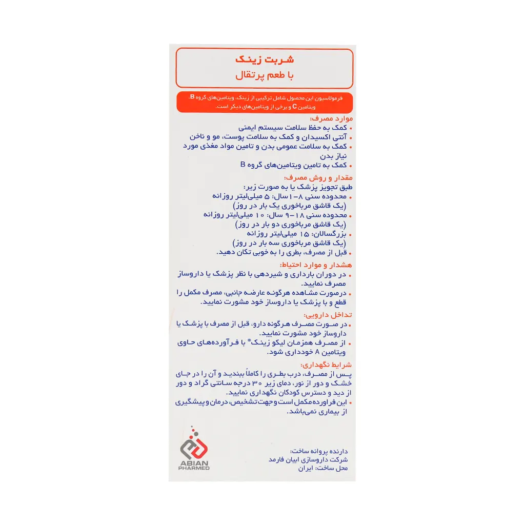 شربت لیکو زینک ابیان فارمد 250 میلی لیتر