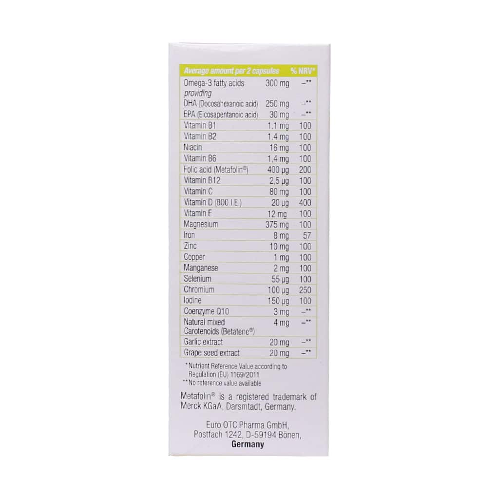 این مکمل حاوی ویتامین و ریزمغذی های ضروری برای بهبود عملکرد قلبی و عروقی (مانند اسیدهای چرب امگا-3 و امگا-9 و ویتامین E به همراه 100 میلی گرم کوآنزیم کیوتن) می باشد که هیچکدام از آنها باعث تغییر تعداد ضربان قلب نمی شوند.