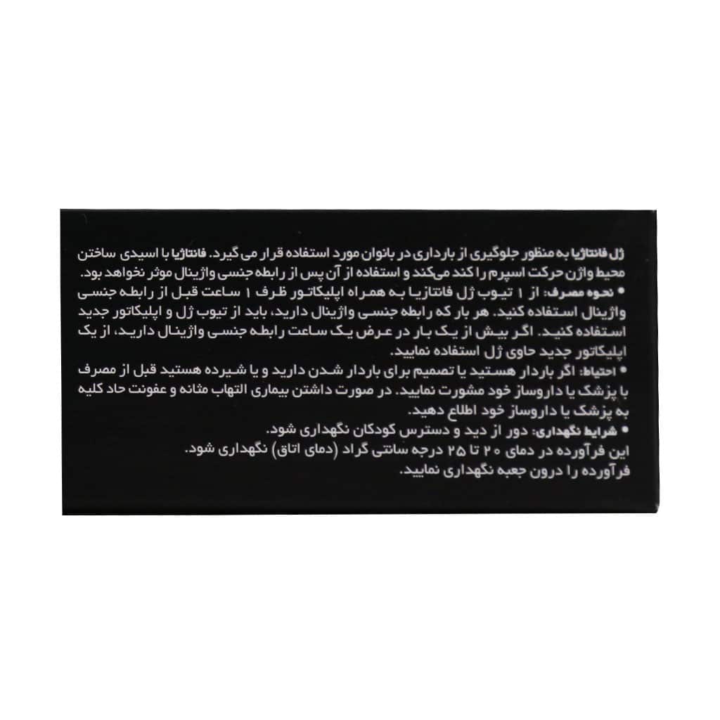 - فانتاژیا در بسته بندی یک تیوب 5 گرمی و اپلیکاتور برای استفاده آسان عرضه میشود که از وقوع بارداری ناخواسته جلوگیری میکند.