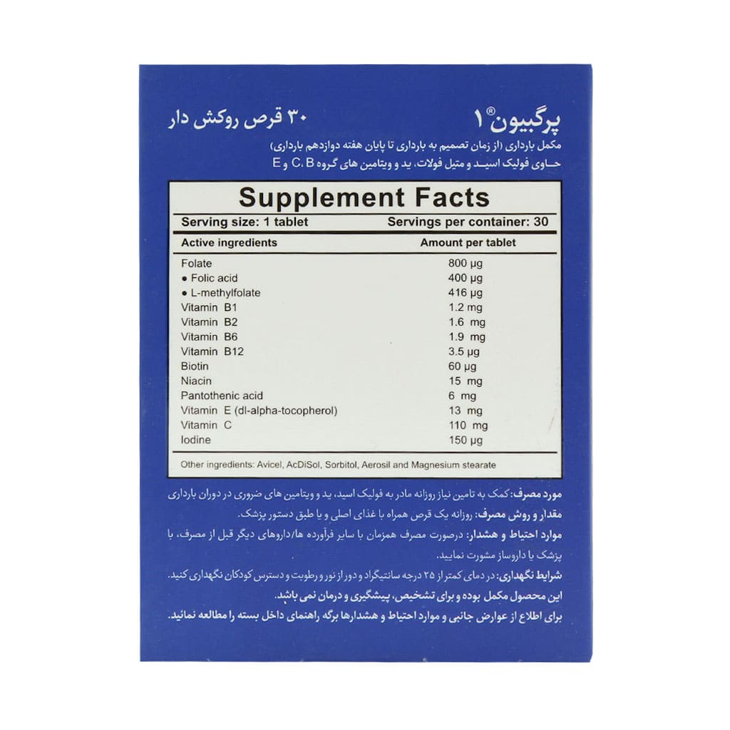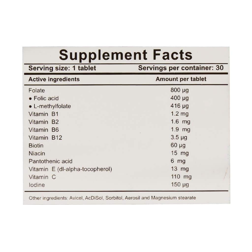 - حاوی فولیک اسید، متیل فولات، ید و ویتامینهای گروه B، C و E