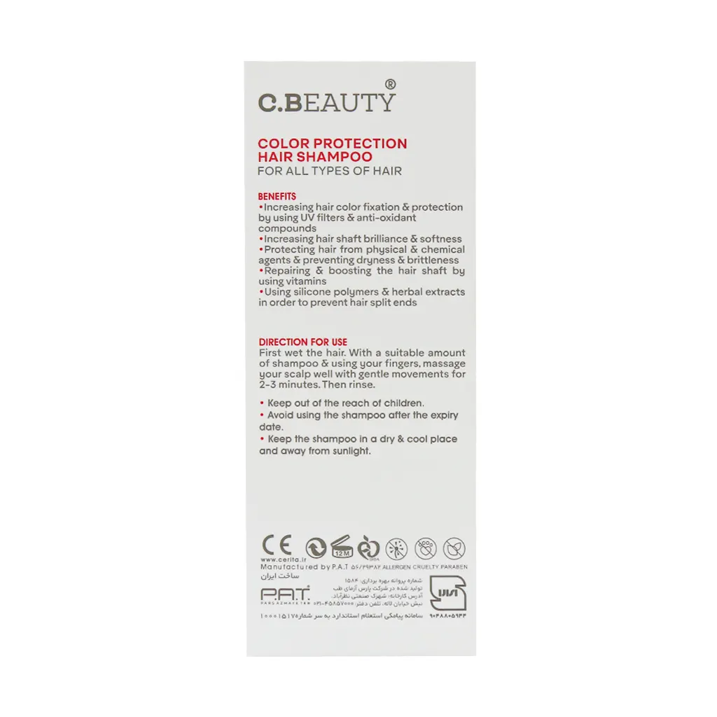 شامپو محافظ رنگ مو سریتا دارای ترکیبات موثری است که باعث ماندگاری رنگ موها شده و علاوه بر آن موها را نیز در برابر آسیب های ناشی از رنگ کردن، محافظت می کند.