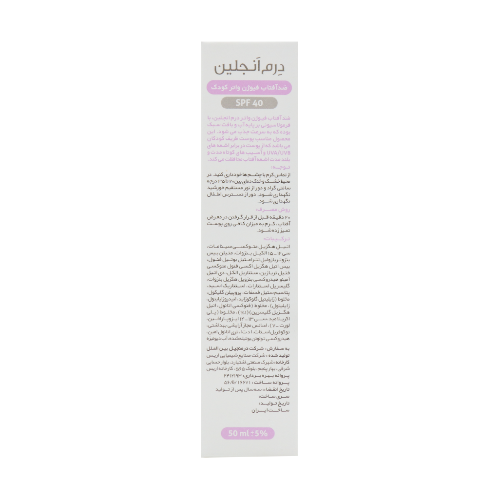 ویژگی های ضد آفتاب فیوژن واتر کودک SPF40 درم انجلین
