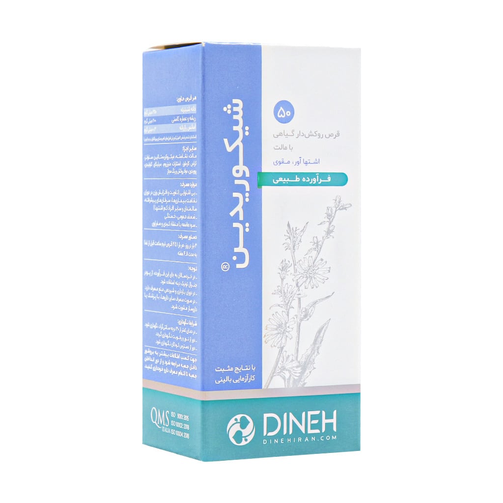 قرص شیکوریدین دینه فرآورده ای گیاهی است که از عصاره ریشه کاسنی، دانه شنبلیله و اسانس رازیانه تهیه شده است و بعنوان یک مکمل گیاهی اشتها آور مورد استفاده قرار میگیرد. شیکوریدین در رفع بی اشتهایی و احساس ضعف عمومی، تامین ویتامینهای مورد نیاز بدن در دوران نقاهت بیماران مورد استفاده قرار میگیرد.