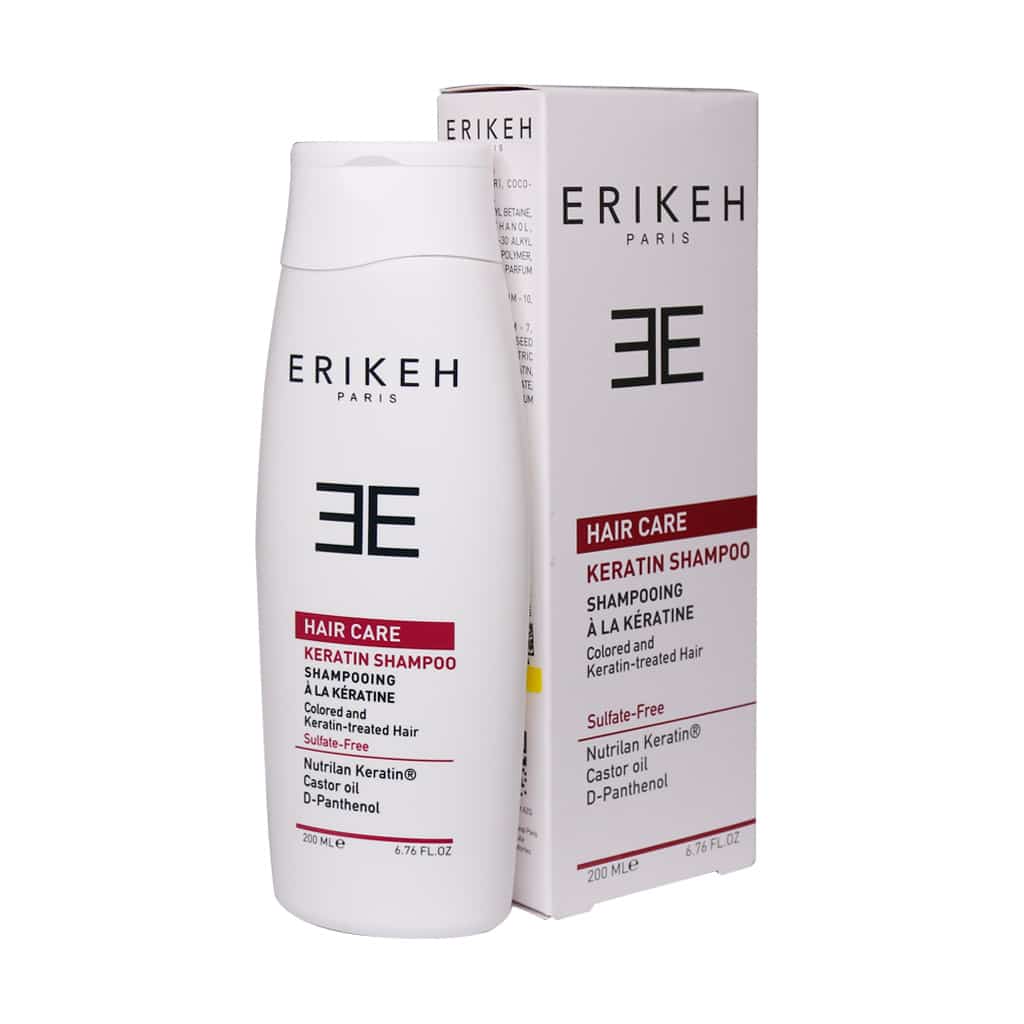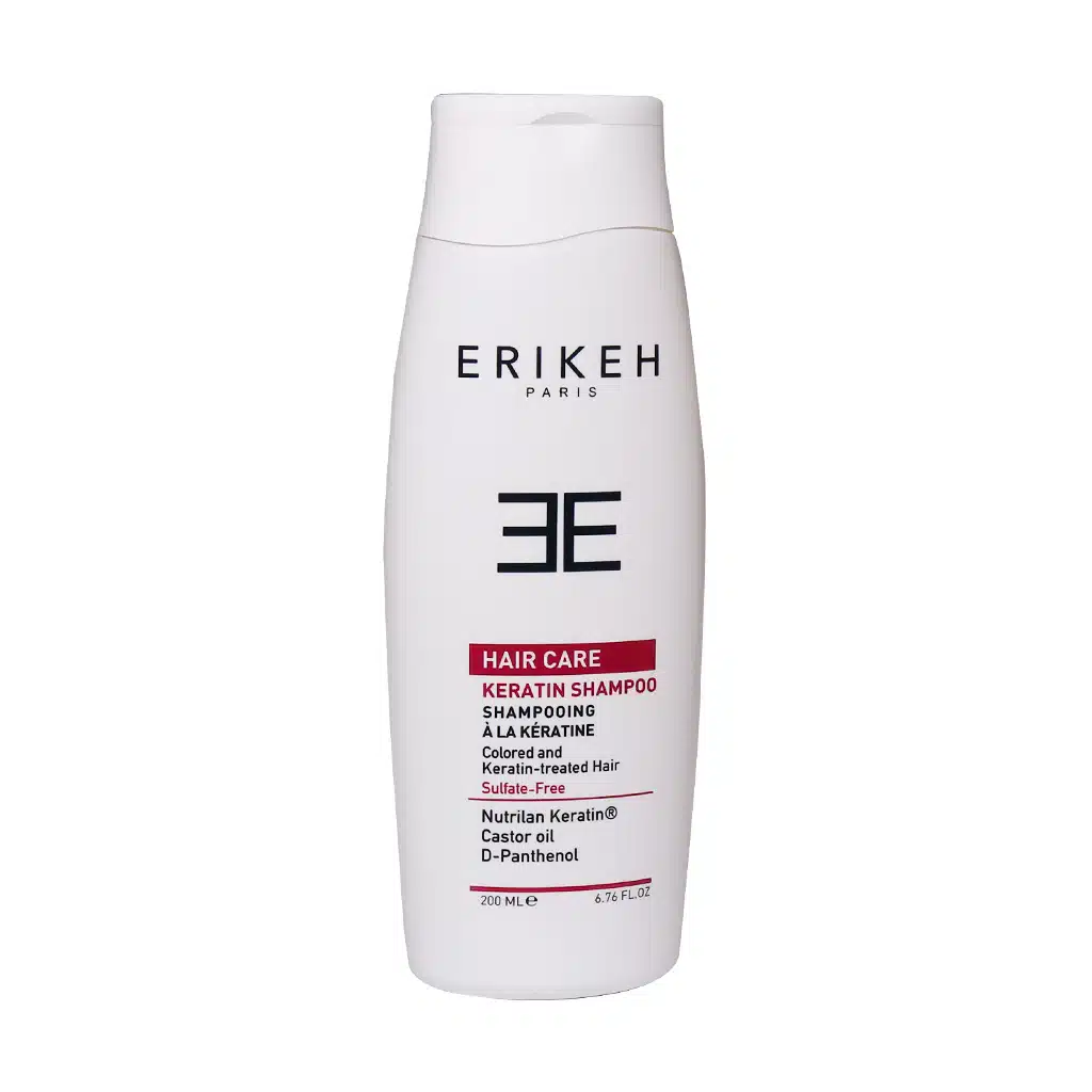 شامپو مو مغذی کراتینه اریکه میزان رطوبت و چربی مو را حفظ میکند. همچنین به علت فاقد سولفات بودن، باعث افزایش ماندگاری رنگ مو و ترکیبات کراتینه میشود.