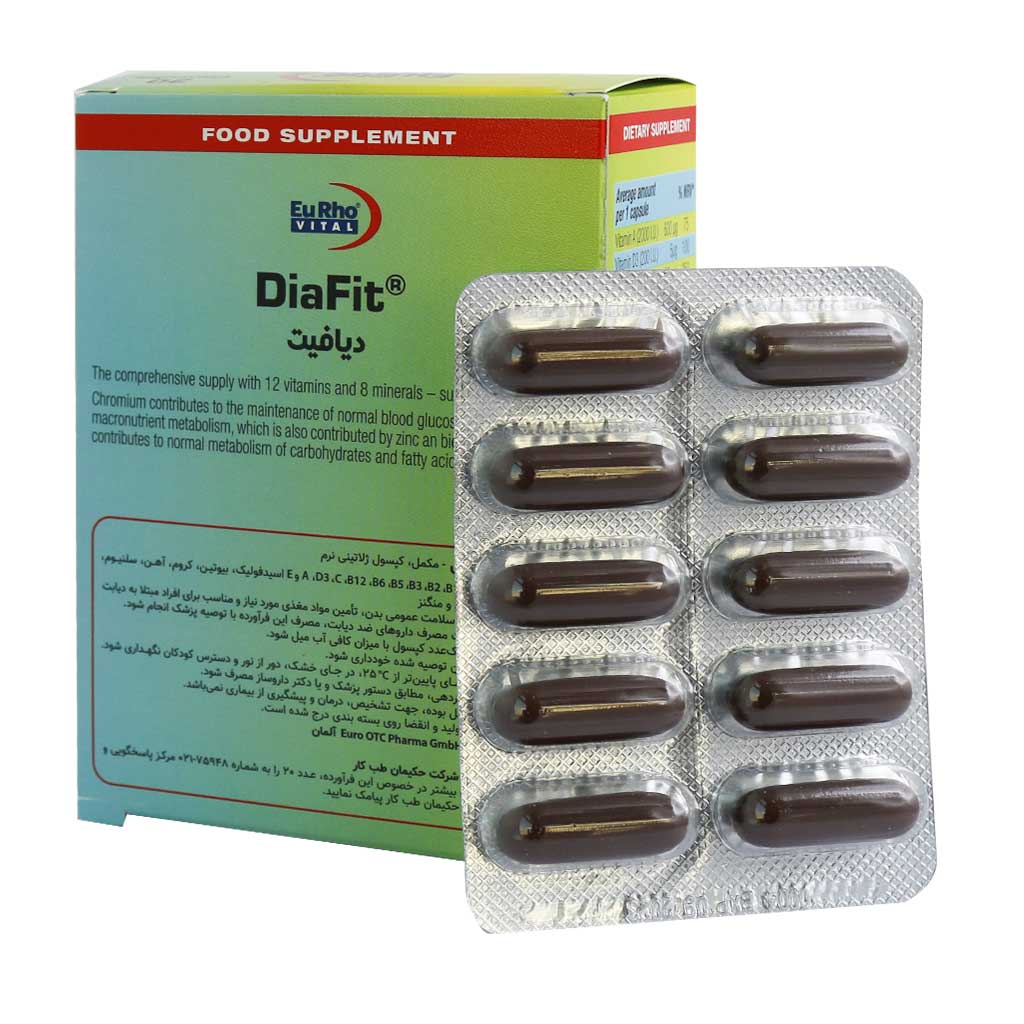کپسول دیافیت یوروویتال یک مولتی ویتامین کامل است به ویژه برای بیماران دیابتی که نیاز بیشتری به این مواد تغذیه ای دارند. این مولتی ویتامین علاوه بر دارا بودن ویتامین های A ،D3 ،E ،C و ویتامین های گروه B، انواع مواد معدنی مورد نیاز بدن شامل روی، کروم، مس، منگنز، آهن، ید و منیزیم را نیز دارا می باشد.