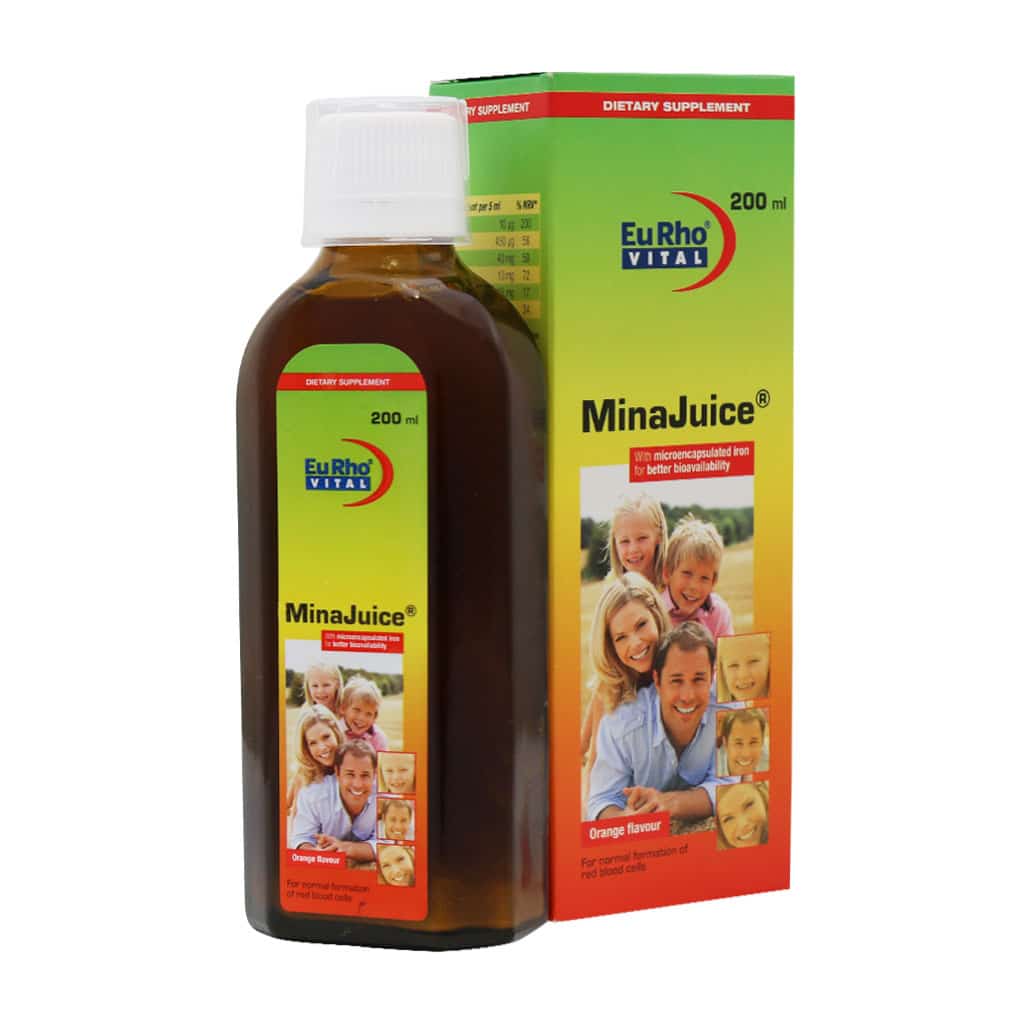 شربت مینا جویس یوروویتال با تامین ویتامین های مورد نیاز بدن افراد، از کم خونی ناشی از سوءتغذیه پیشگیری کرده و به رشد جسمی و ذهنی در سنین رشد کمک می نماید.