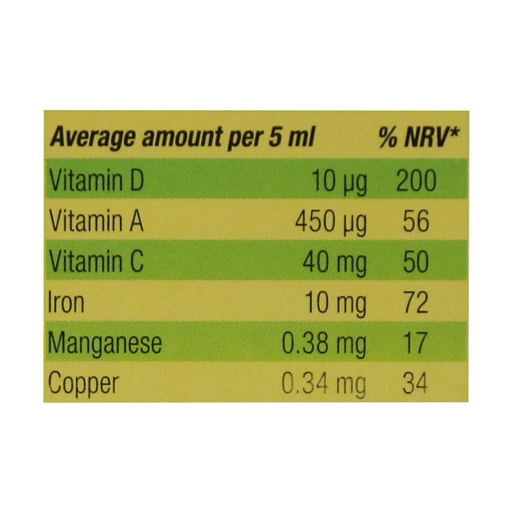 کودکان 1تا3 سال یک قاشق چای خوری (2.5 میلی لیتر) یکبار در روز