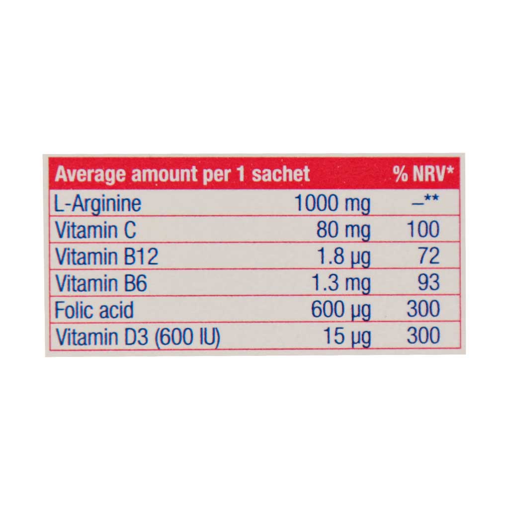علاوه بر آن افزایش خونرسانی به عضلات، باعث اثرگذاری دیگری از مکمل ال آرژنین میشود. این ویژگی به رفع مشکلات نعوظ در مردان نیز کمک میکند. خوشبختانه ال-آرژنین پلاس یوروویتال به صورت ساشه تهیه و عرضه شده است و بدین صورت استفاده آسانتر و جذب راحتتری دارد. همچنین طعم پرتقال باعث پذیرش بهتر آن شده است.