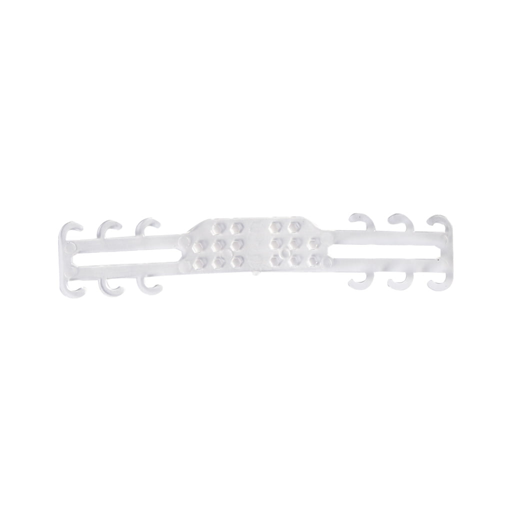 با این گیره دیگر نیازی به انداختن ماسک دور گوش خود نیستید، بلکه بند ماسک به دندانههای گیره در پشت سر انداخته شده و فشار وارده به گوش از بین میرود. این محصول از جنس پلاستیک قابل انعطاف پذیر ساخته شده است. دندانههای روی آن برای تنظیم طول و کشیدگی بند ماسک کاربرد دارد و میتوانید ماسک را فیکس صورت خود کنید.