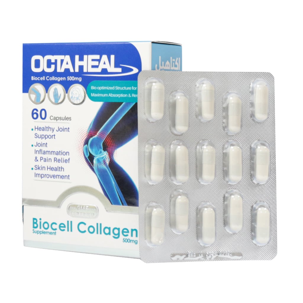 کپسول اکتاهیل بایوسل کلاژن فاران شیمی حاوی 500 میلی گرم بایوسل کلاژن است. بایوسل کلاژن شامل 300 میلی گرم کلاژن هیدرولیز شده تایپ 2، 100 میلی گرم کندرویتین سولفات و 50 میلی گرم هیالورونیک اسید است. علاوه بر اثرات چشمگیر این ترکیبات بر سلامت مفاصل و استخوان، جذب آن نیز بالا بوده و باعث کارایی هرچه بیشتر فراورده میشود. با توجه به نقش مهمی که این ترکیبات در حفظ سلامتی غضروف، مفاصل، بافتهای پیوندی و پوست دارند، کمبود آنها منجر به بروز مشکلاتی از جمله درد مفاصل و خشکی پوست میشود.