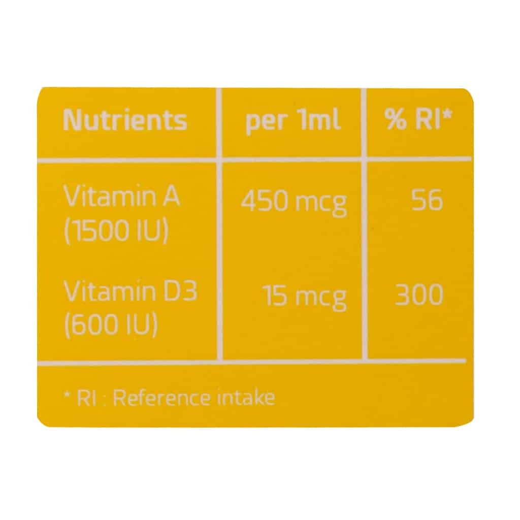 مصرف همزمان این محصول با سایر مکملهای حاوی ویتامینهای A و D توصیه نمیشود.