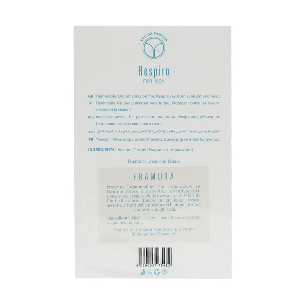 برای ماندگاری بیشتر، ادوپرفیوم مردانه فرامورا مدل Respiro را از فاصله 20 سانتی متری اسپری نمایید.