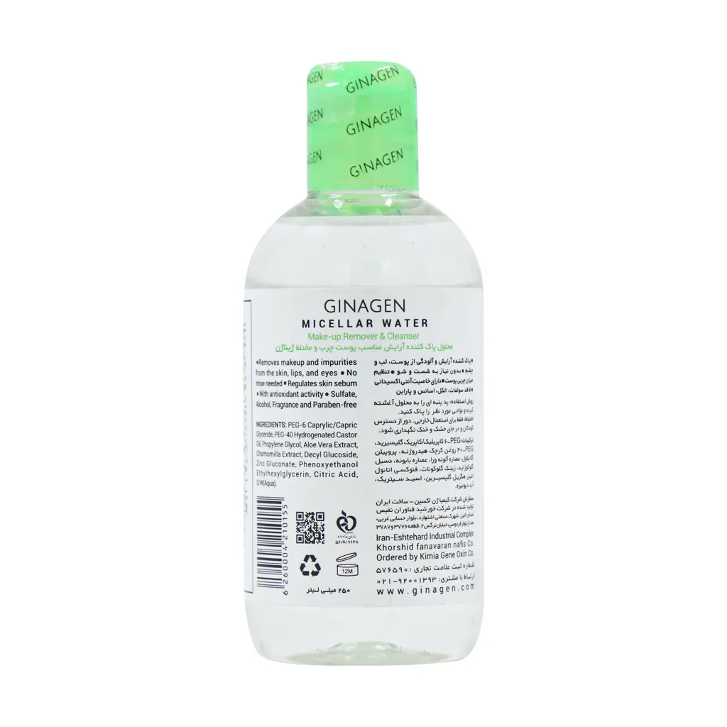 محلول پاک کننده آرایش پوست چرب و مختلط ژیناژن 250 میلی لیتر