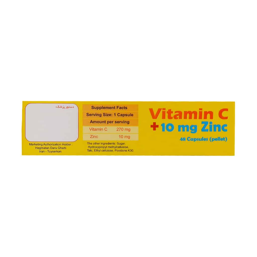 کپسول ویتامین C و 10 میلی گرم زینک هگمتان دارو غرب 48 عدد