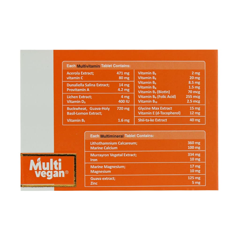 قرص مولتی وگان هولیستیکا یک مولتی ویتامین و مولتی مینرال صد در صد طبیعی است. این محصول دارای ترکیبات منحصر به فردی است که تمامی ویتامینها و املاح مورد نیاز بدن را تامین میکند. همچنین به سلامت چشم و سلولهای بینایی کمک کرده و موجب بازیابی عملکرد بهینه جسمی و ذهنی میشود. شاید برای شما هم سوال شده باشد که مواد تشکیل دهنده مولتی ویتامین چیست ؟ به همین علت در ادامه به تفکیک، مواد موثر قرص روکشدار مولتی وگان را توضیح دادهایم.
