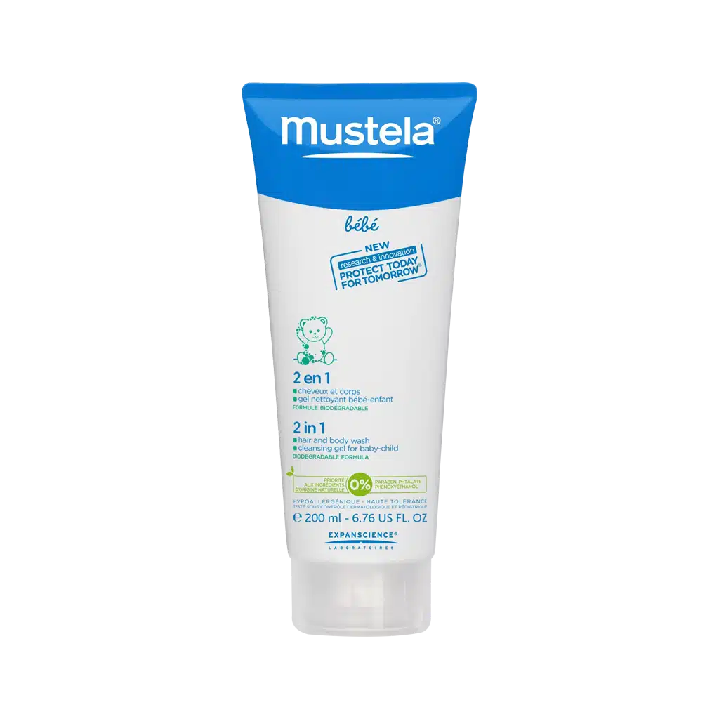شامپو 2 در 1 سر و بدن نوزادان موستلا مختص شستشوی موثر و بی ضرر برای کودکان است که بدن و سر نوزادان و کودکان را با ملایمت تمیز می کند و در عین حال آسیبی به لایه هیدرولیپیدی پوست آنها نمی رساند.