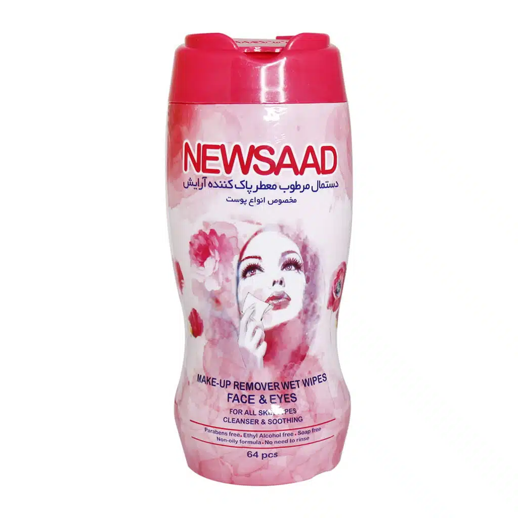 دستمال مرطوب معطر پاک کننده آرایش نیوساد مناسب انواع پوست 64 عدد