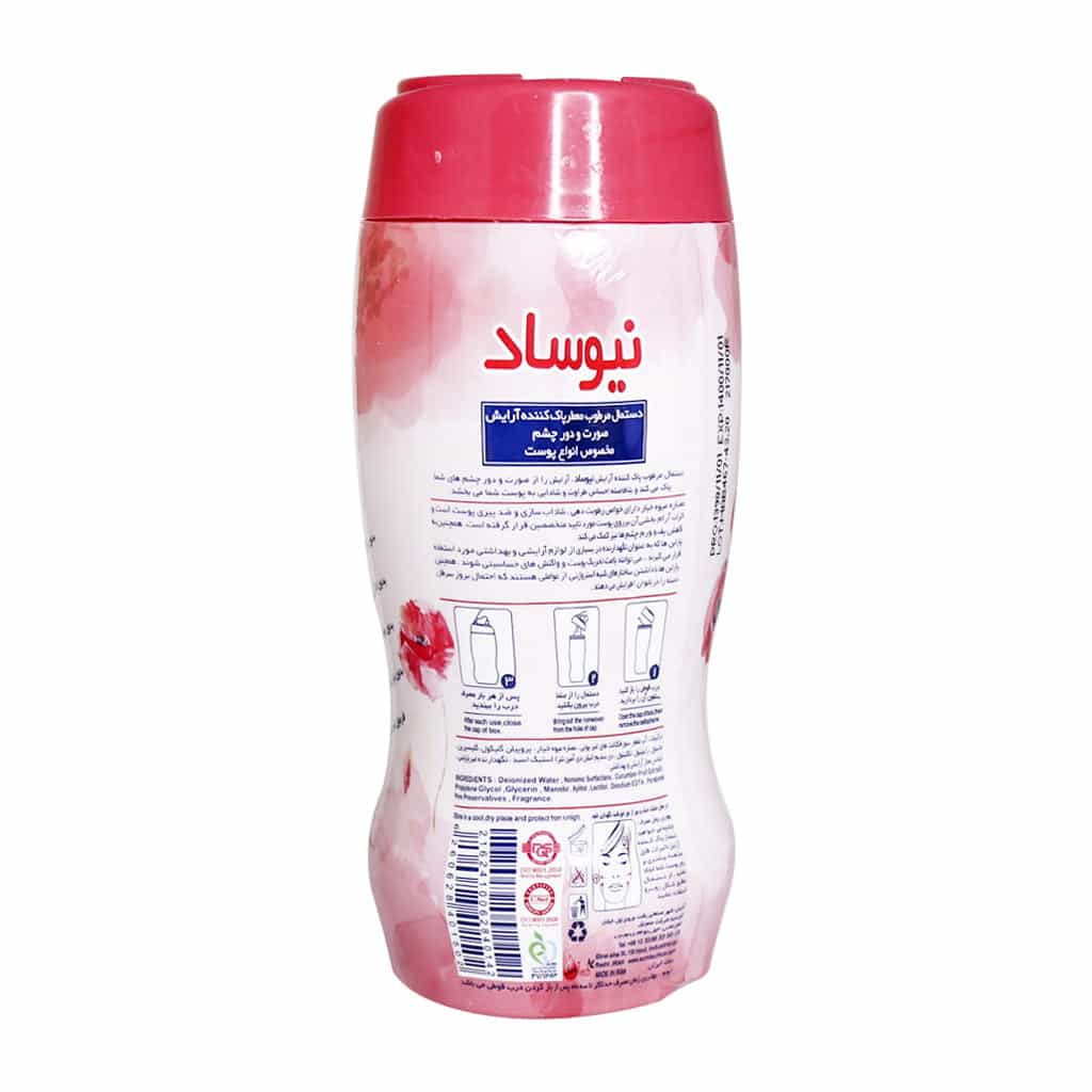 پوست گردن، صورت و اطراف چشم را به آرامی با دستمال مرطوب معطر نیوساد تمیز کنید.