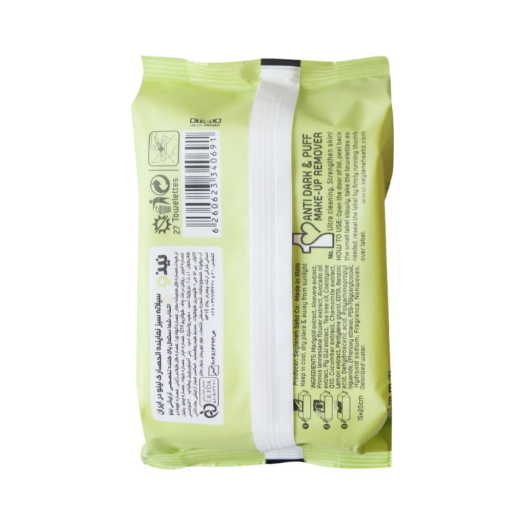 دستمال مرطوب پاک کننده آرایش ضد تیرگی و پف نینو 27 عدد
