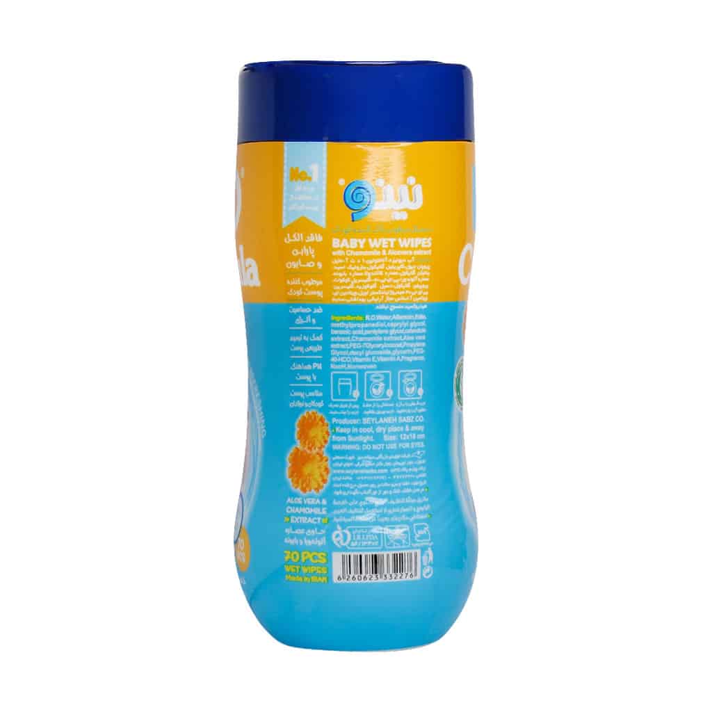 دستمال مرطوب پاک کننده کودک استوانه ای نینو حاوی کالاندولا 70 عدد