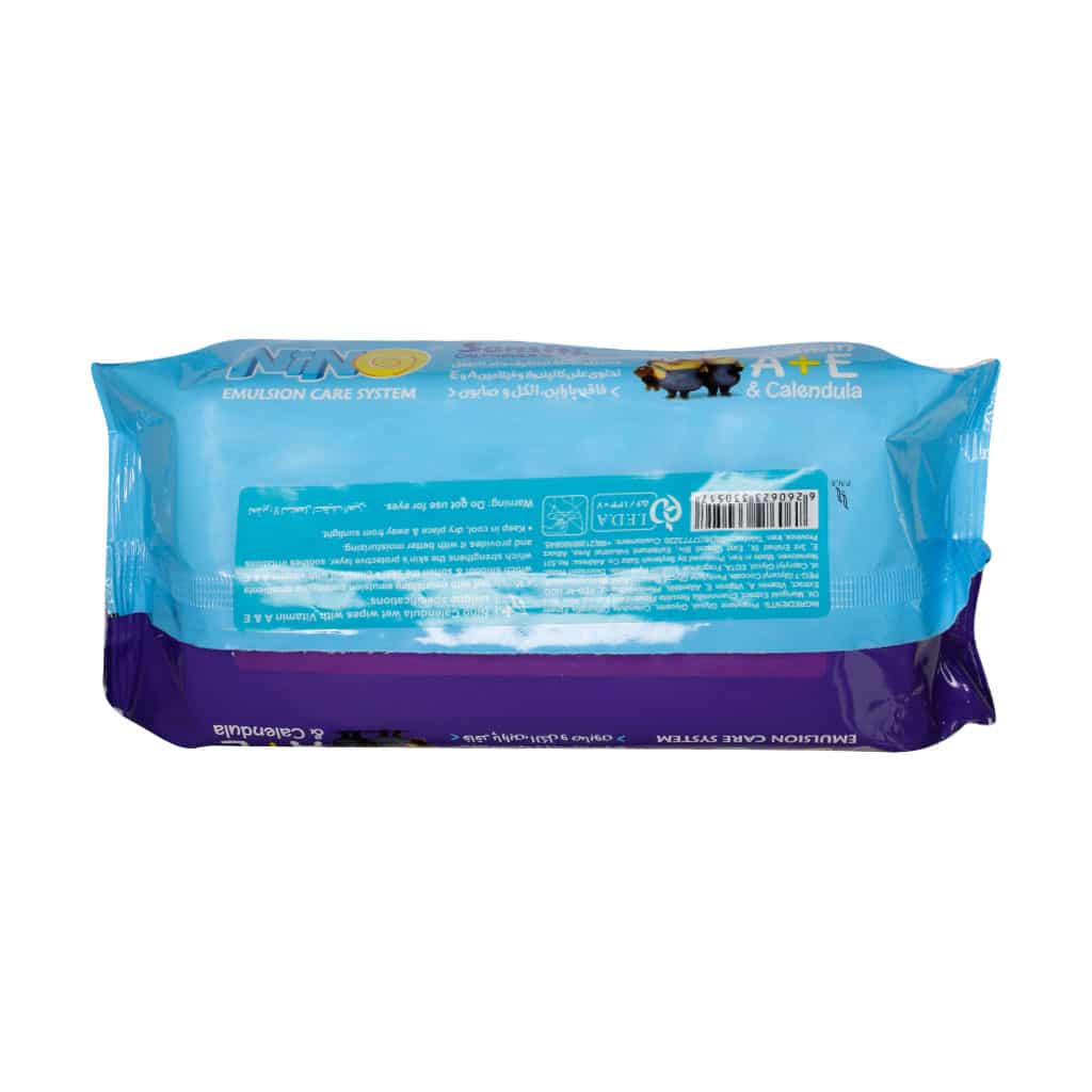دستمال مرطوب پاک کننده کودک حاوی کالاندولا نینو غنی شده با ویتامینهای A و E است که علاوه بر پاکیزگی، به خوبی پوست کودک را مرطوب و نرم میکند.