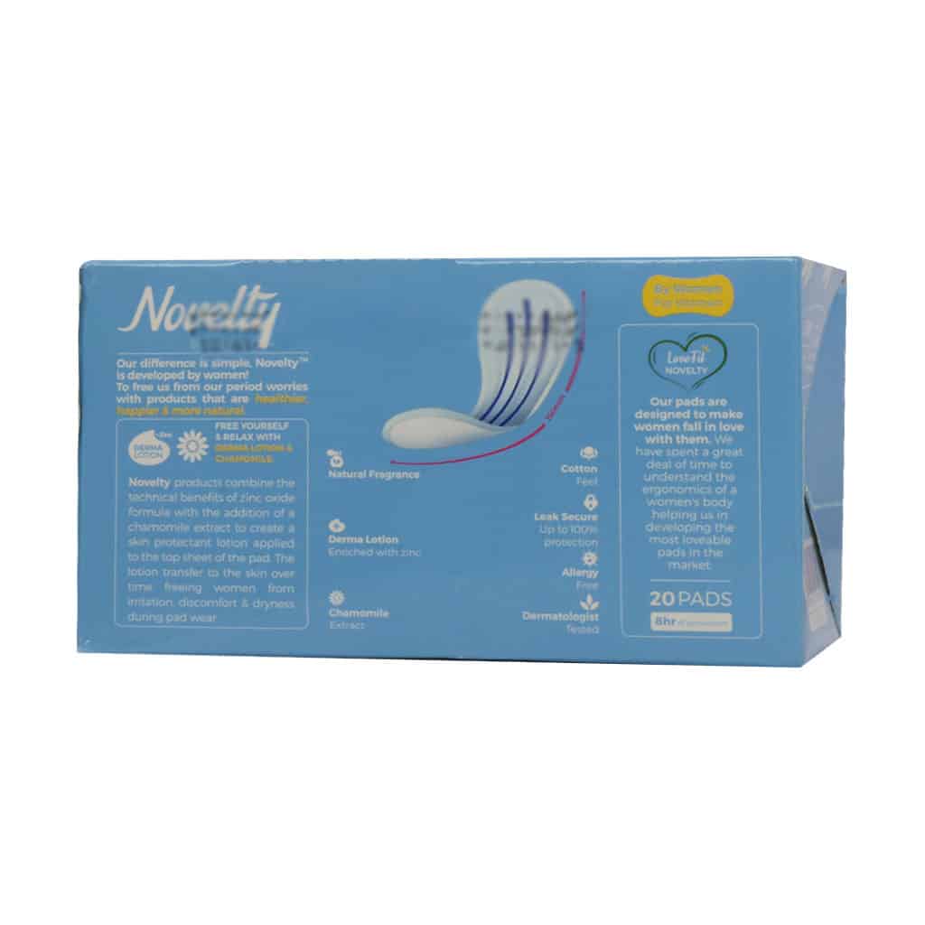 پد بهداشتی روزانه ناولتی سایز متوسط با استفاده از مزایای ضد التهابی لوسیون زینک اکساید و با افزودن عصاره بابونه با ایجاد یک لایه محافظ بر روی سطح خارجی پد که با بدن در تماس است، از احساس سوزش، ناراحتی و خشکی پوست در طول زمان استفاده جلوگیری میکند. محصولات ناولتی توسط زنان و برای زنان طراحی شده است تا بدون نگرانی، سلامتتر و شادابتر به دنبال فعالیتها و علاقه مندیهای روزمره خود باشند. این پد رویه کتانی دارد و ضدحساسیت است. علاوه بر آن در این محصول از مواد سمی، پارابن، کلراید و مواد مضر شیمیایی استفاده نشده است.