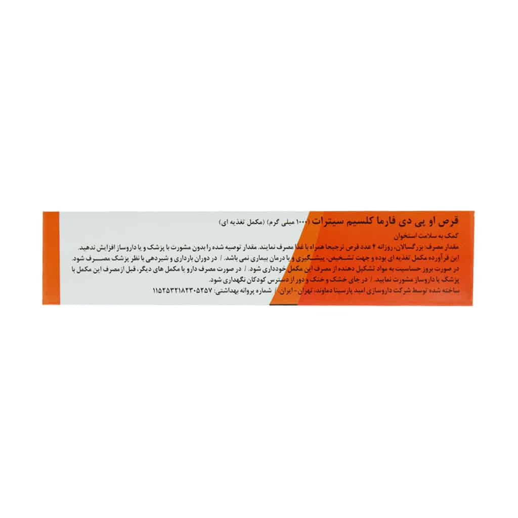 ویژگی های قرص کلسیم سیترات 1000 میلی گرم او پی دی فارما