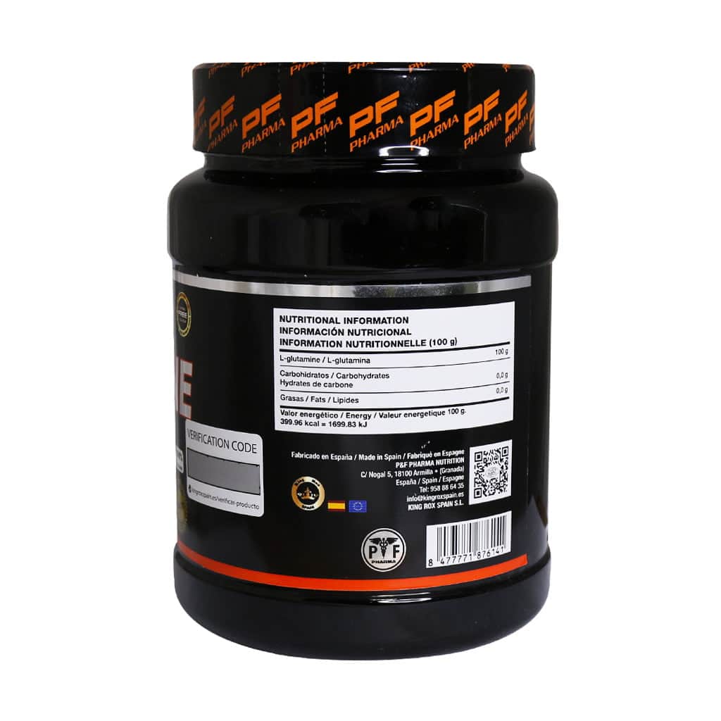 پودر گلوتامین پی اند اف فارما ساخت کشور اسپانیا بوده و در پیشگیری از تحلیل عضلانی و ریکاوری موثر است. این محصول فاقد طعم بوده و در اندازه 500 گرمی در بازار عرضه میشود.