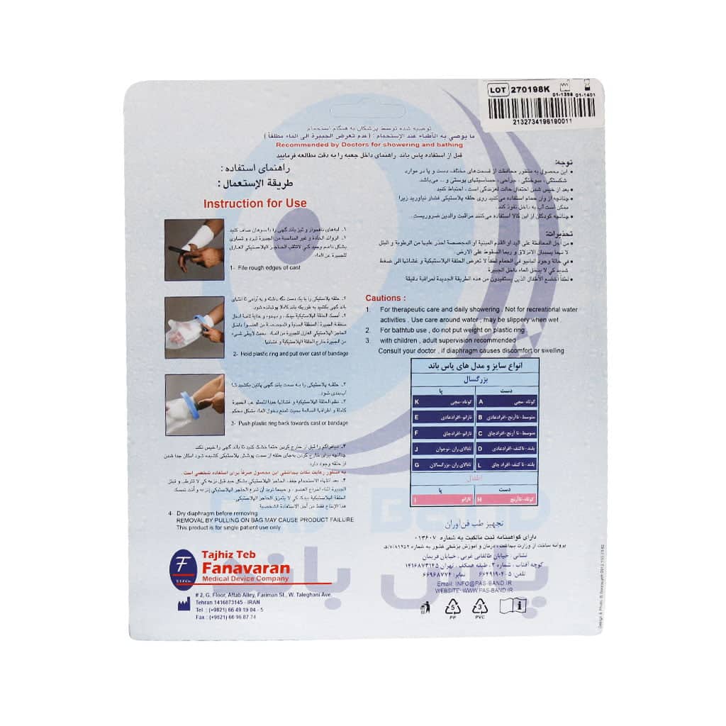 این محصول به شما کمک میکند تا نظافت را در دوره نقاهت شکستگی پای خود رعایت کرده و به راحتی استحمام کنید. تنها مهم است که مطابق با روش مصرف، از این محصول استفاده کنید. محافظ باند گچی و پانسمان پاس باند مدل F پا برای تا زانو چاق و تنومند طراحی شده است و لازم به ذکر است که این محصول در مدلهای مختلف برای دست و پا در بازار ارائه گشته است.