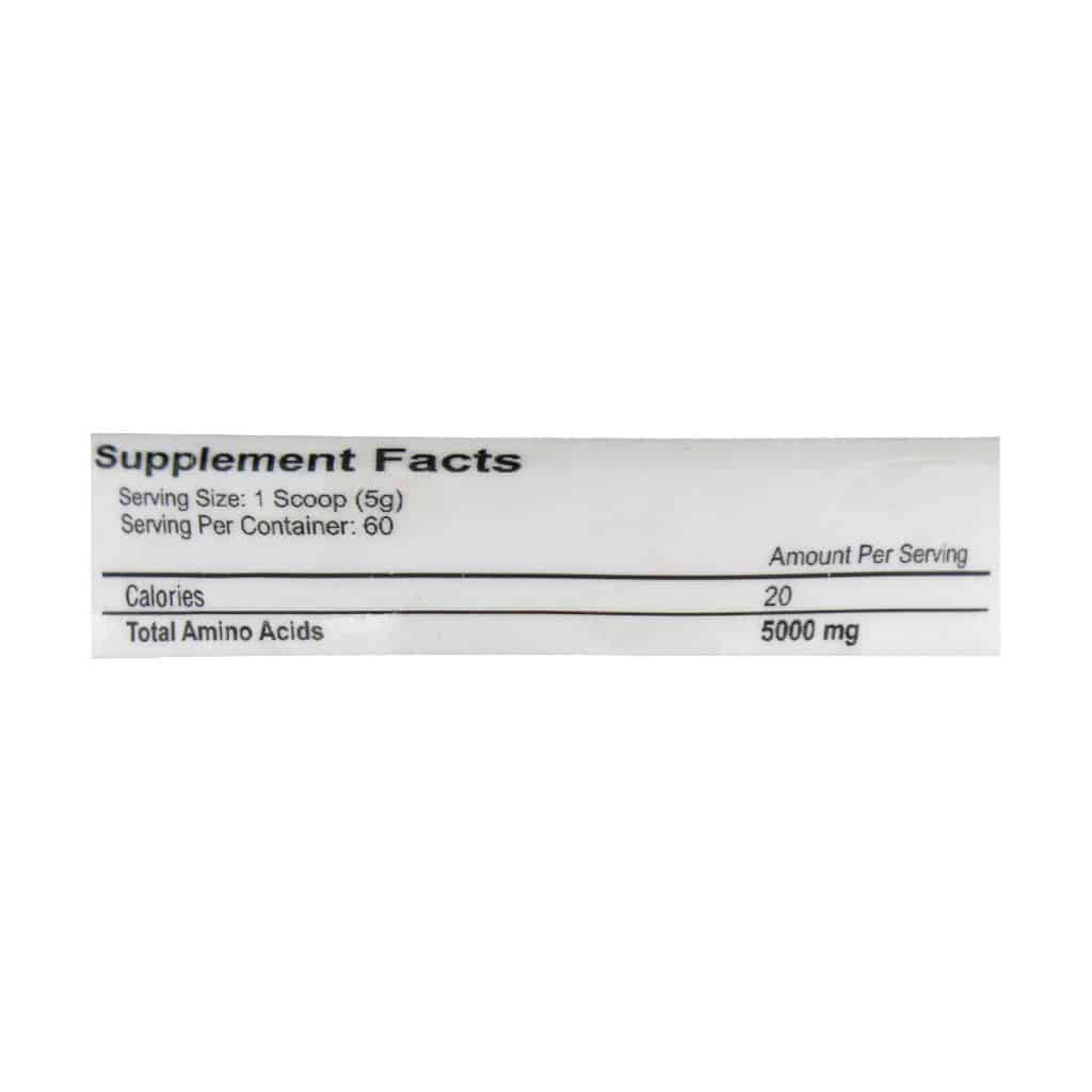 لوسین، ایزولوسین، والین، ال لیزین، ال هیستیدین، ال متیونین، فنیل آلانین، ال آلانین، ال آرژنین، ال گلوتامین، گلایسین، ال پرولین، ال سرین، تائورین، تیروزین، بتا آلانین، ال کارنیتین، آسپارتیک اسید، گلوتامیک اسید، ال سیترولین، تریپتوفان، سیستئین، آسه سولفام پتاسیم، اسانس و رنگ مجاز خوراکی