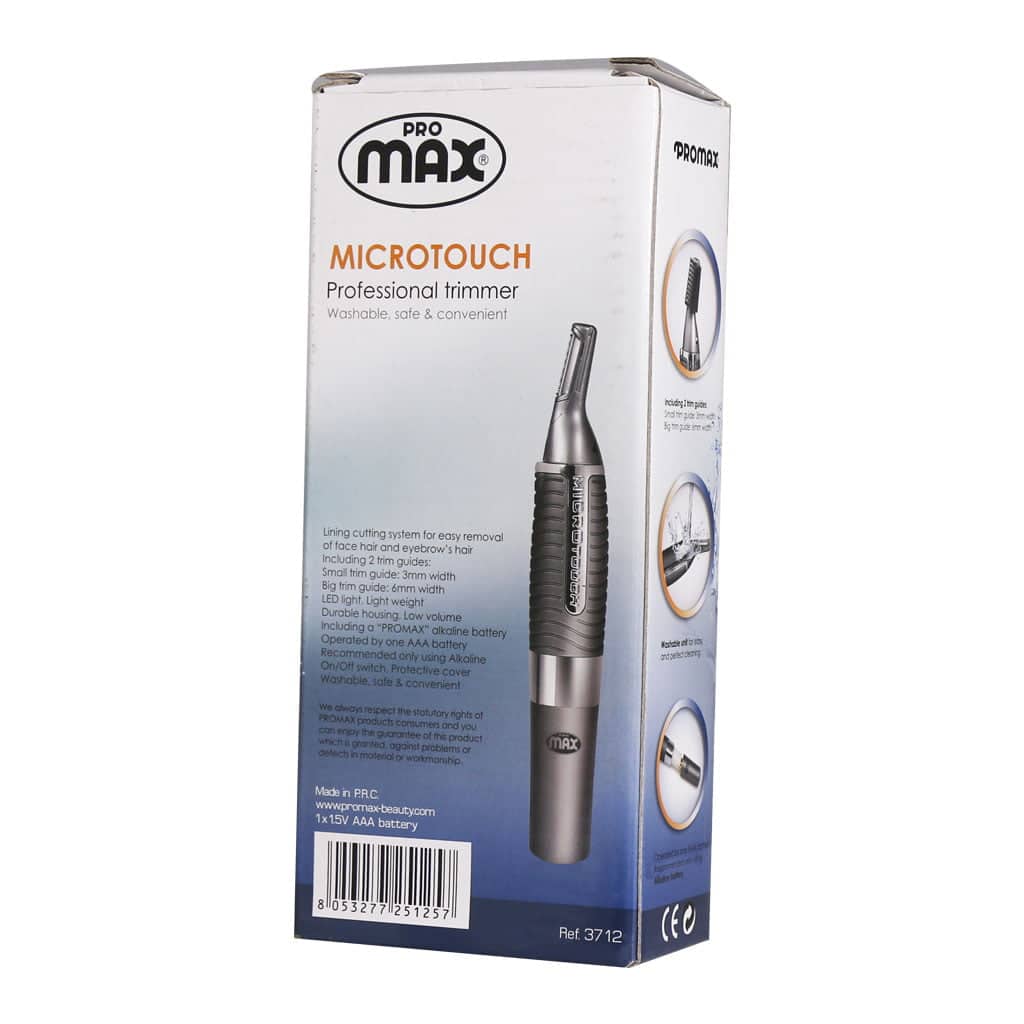 دستگاه اصلاح موی گوش و بینی و ابرو میکروتاچ پرومکس مدل 3712 جهت مرتب کردن موهای ابرو و دیگر نقاط بدن طراحی شده است که قابل شستشو و با دقت عمل بسیار بالا است.