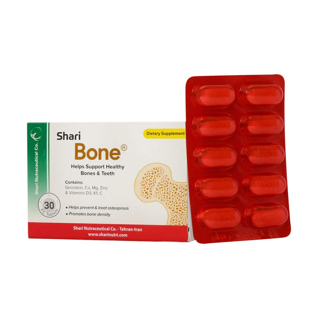قرص بن شاری مکملی کامل جهت کمک به حفظ سلامت استخوانها و دندانها است. این مکمل حاوی کلسیم، منیزیم، زینک و ویتامینهای D3، k1 و C است که هر یک به افزایش تراکم استخوان و پیشگیری و درمان پوکی استخوان کمک میکنند. جنیستئین موجود در این مکمل استخوان ساز یک ایزوفلاون با منشا گیاهی است که میتواند در پیشگیری از بروز پوکی استخوان در خانمها بعد از یائسگی و در آقایان بعد از 65 سالگی موثر باشد.
