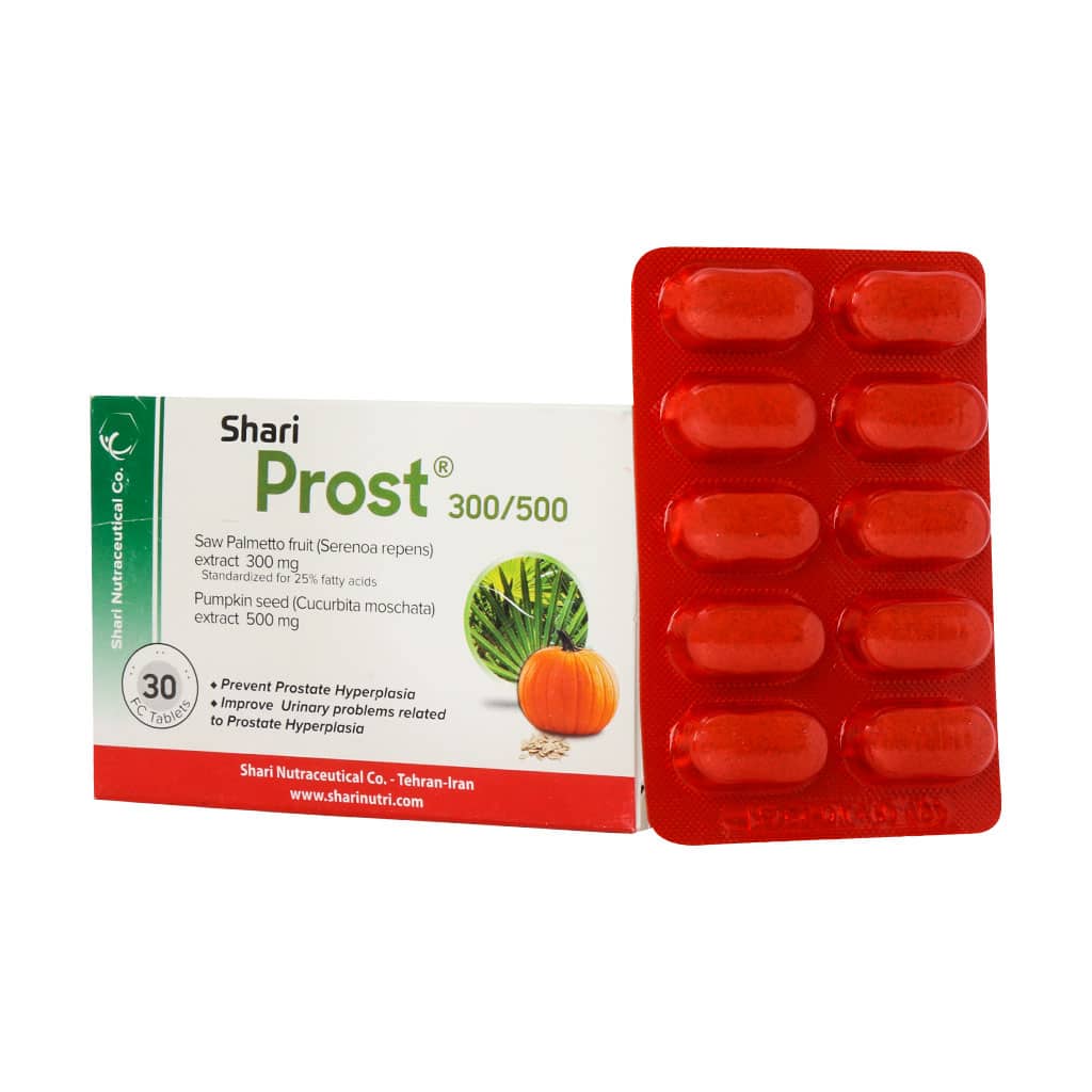 قرص پروست 500-300 میلی گرم شاری با داشتن عصاره گیاه نخل اره ای و دانه کدو به درمان هیپرپلازی خوش خیم پروستات، سرطان پروستات و مشکلات ادراری ناشی از بزرگ شدن پروستات کمک موثری میکند.