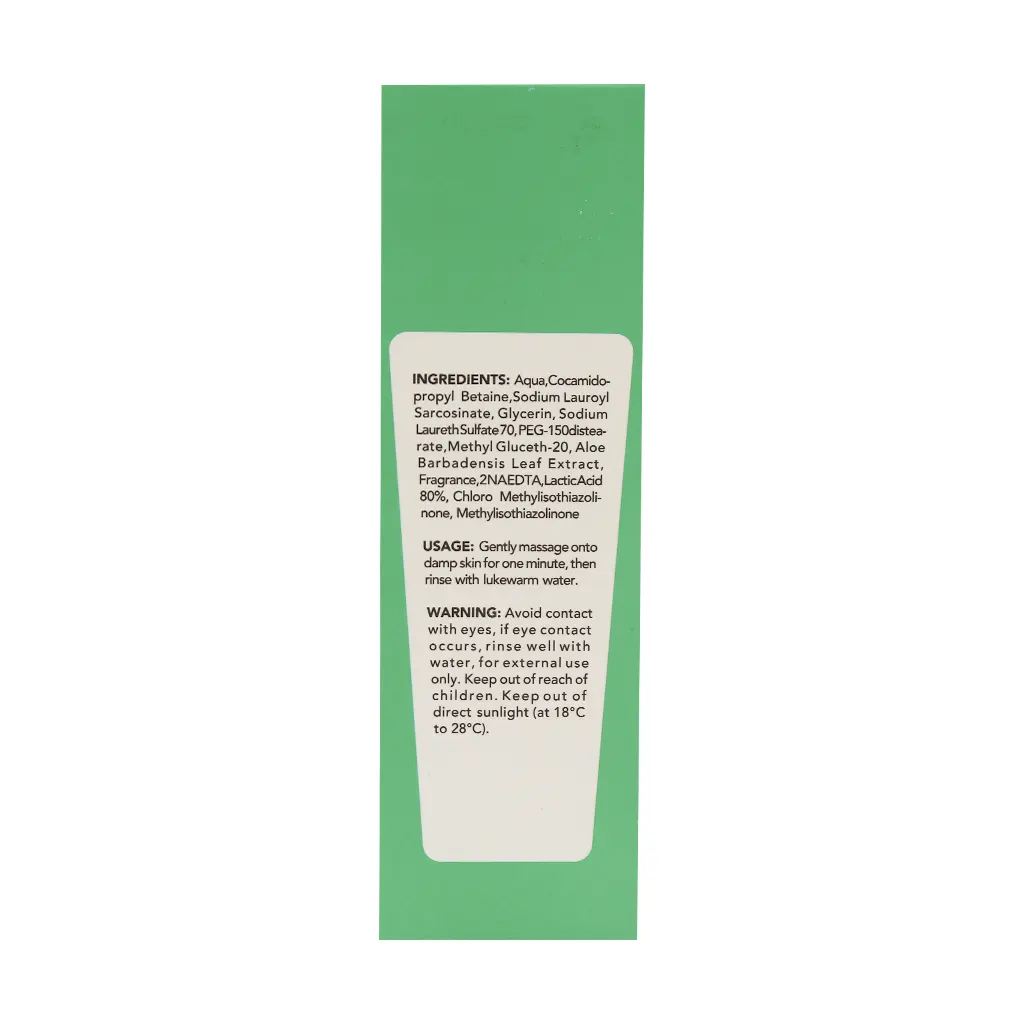 آب دیونیزه، کوکامیدو پروپیل بتائین، سدیم لورول سارکوسینات، گلیسیرین، سدیم لورات سولفات 70، PEG 150 دی استئارات، عصاره آلوئه ورا، اسانس، لاکتیک اسید 80 درصد، کلرو متیل ایزوتیازولیلنون، متیل ایزوتیازولینون.