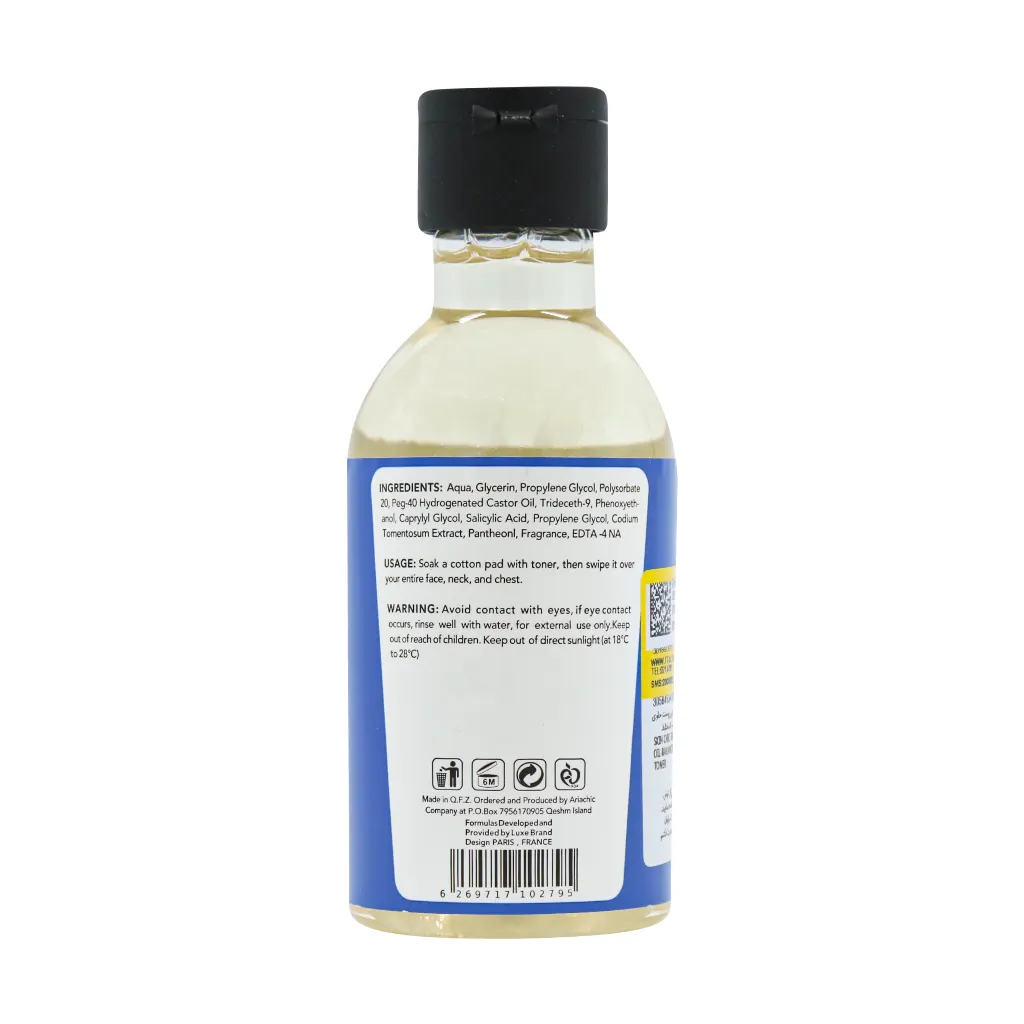 آب دیونیزه، گلیسیرین، پروپیلن گلیکول، پلی سوربات 20، روغن کرچک هیدرولیز شده، فنوکسی اتانول، کاپریلیل گلیکول، سالیسیلیک اسید، پروپینل گلیکول، پانتنول، اسانس.
