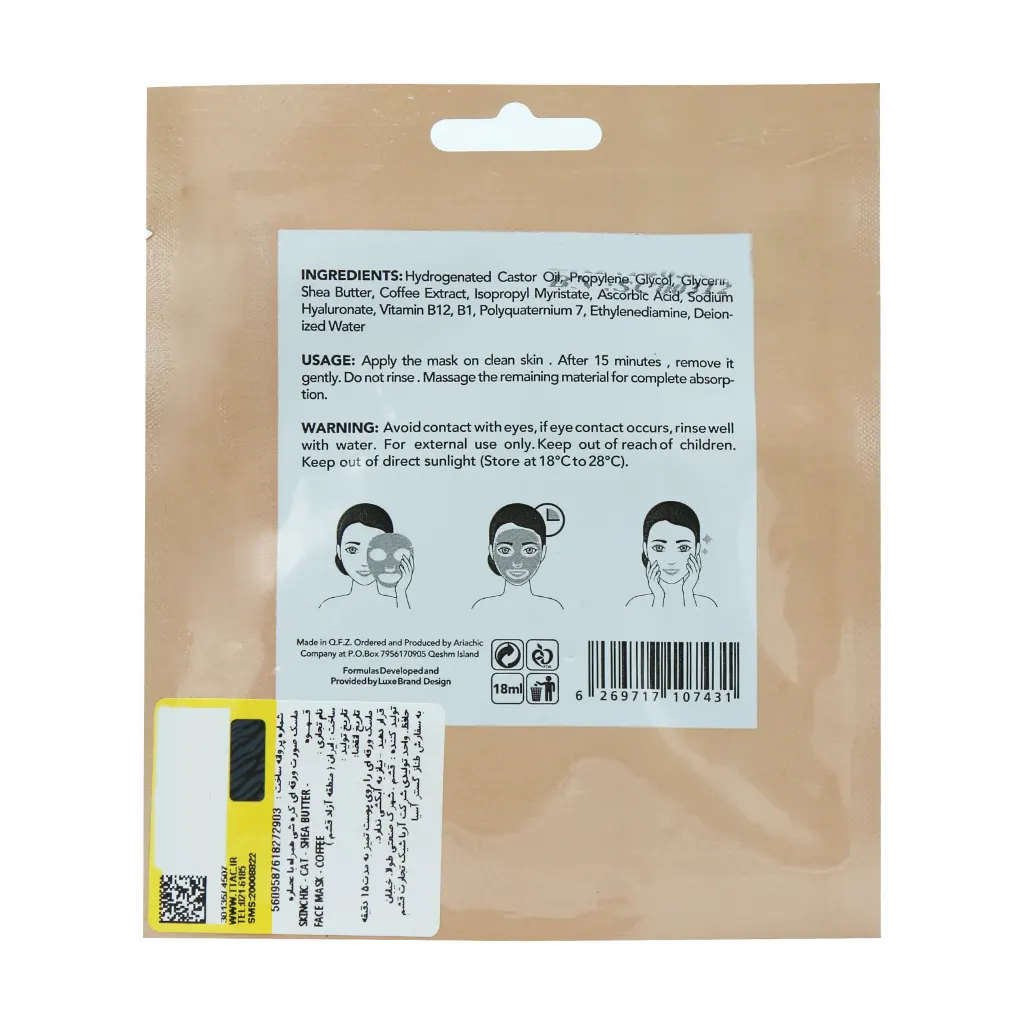 ویژگی های ماسک ورقه ای صورت شی باتر با عصاره قهوه اسکین شیک