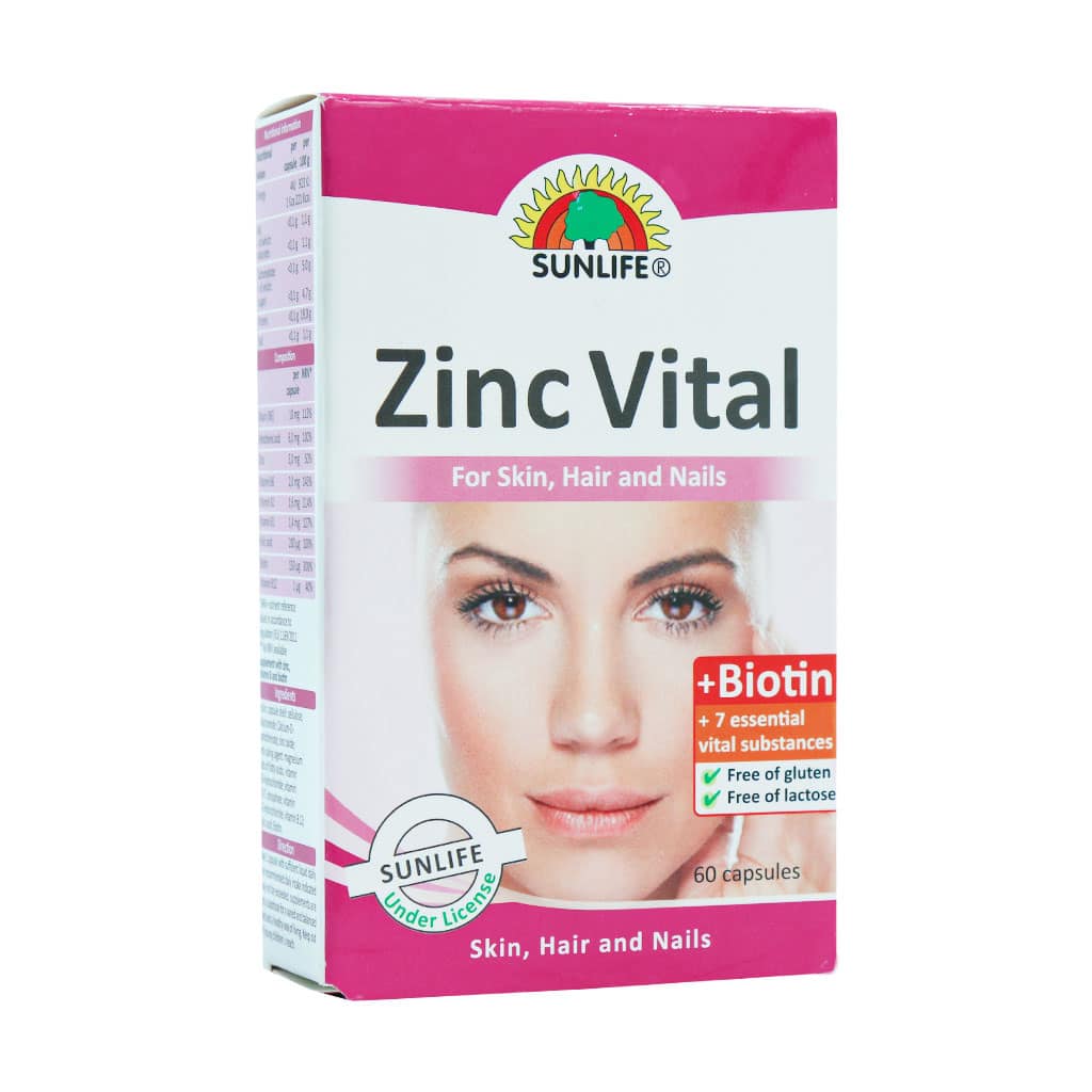 کپسول زینک ویتال سان لایف حاوی 5 میلی گرم زینک (روی)، به همراه ویتامینهای گروه B است، که به منظور حفظ سلامت و بهبود رشد پوست، مو و ناخن فرموله شده است.