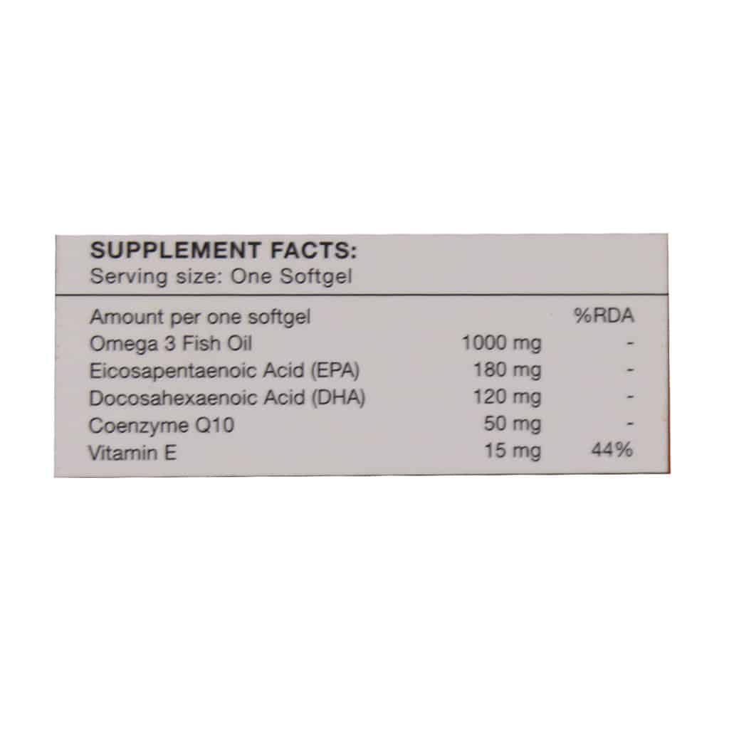 ترکیبات این قرص حاوی کیوتن، امگا 3 و ویتامین E است که فواید بسیاری برای بدن دارد. اسیدهای چرب امگا3 جزء اسیدهای چرب ضروری هستند که توسط بدن ساخته نمیشوند و به همین دلیل باید از منابع غذایی تامین شوند. ارزشمندترین نوع اسید چرب امگا 3 اسیدهای چرب ایکوزا پنتانوئیک اسید و دوکوزا هگزانوئیک اسید موجود در روغن ماهی هستند. قرص کوآنزیم کیوتن یا یوبیکینون در تنفش و تولید انرژی سلولی نقش مهمی ایفا میکند و در تمام بدن به خصوص قلب، کبد، کلیه و پانکراس وجود دارد. کوآنزیم کیوتن نقش مهمی در حذف رادیکالهای آزاد و محافظت سلولها از واکنشهای اکسیداتیو ایفا میکند.