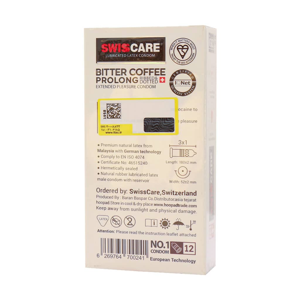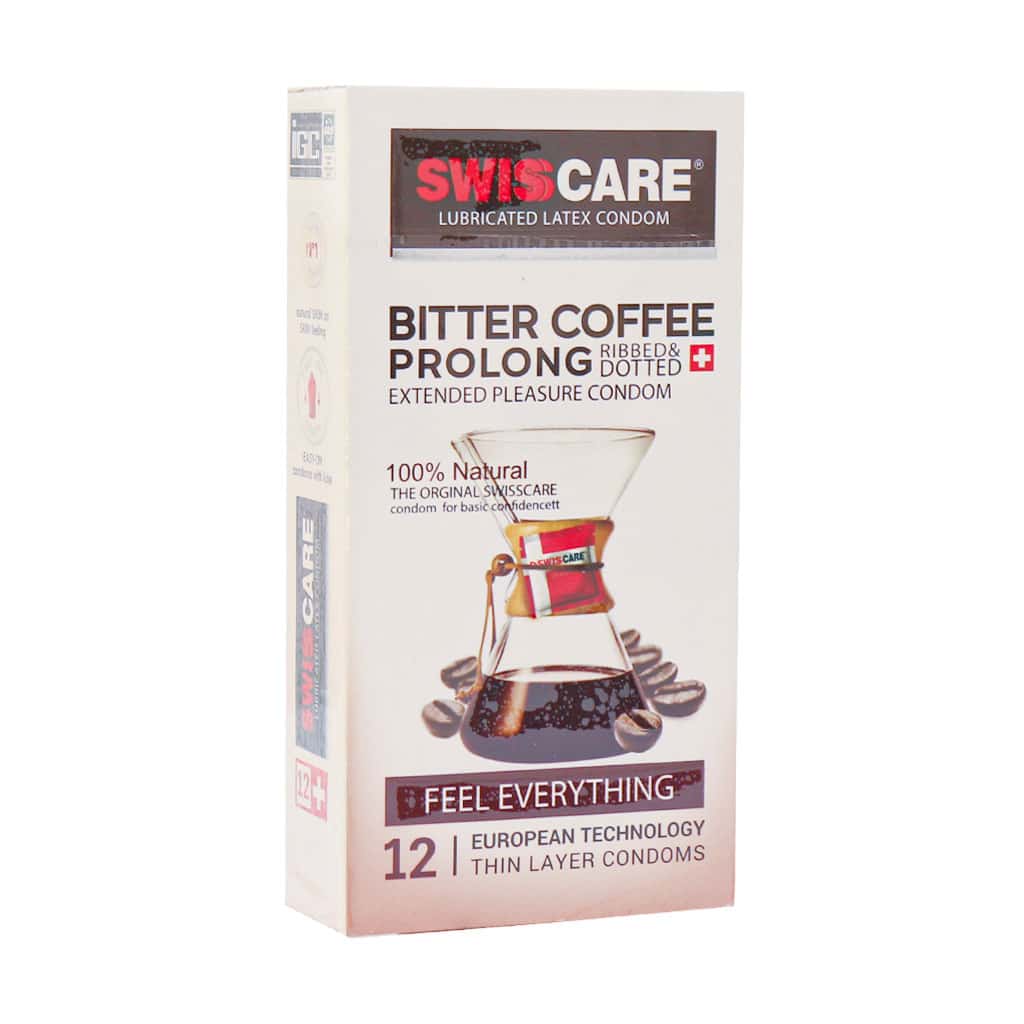 کاندوم تاخیری و خاردار قهوه تلخ سوئیس کر مدل Bitter Coffee Prolong بسته 12 عدد