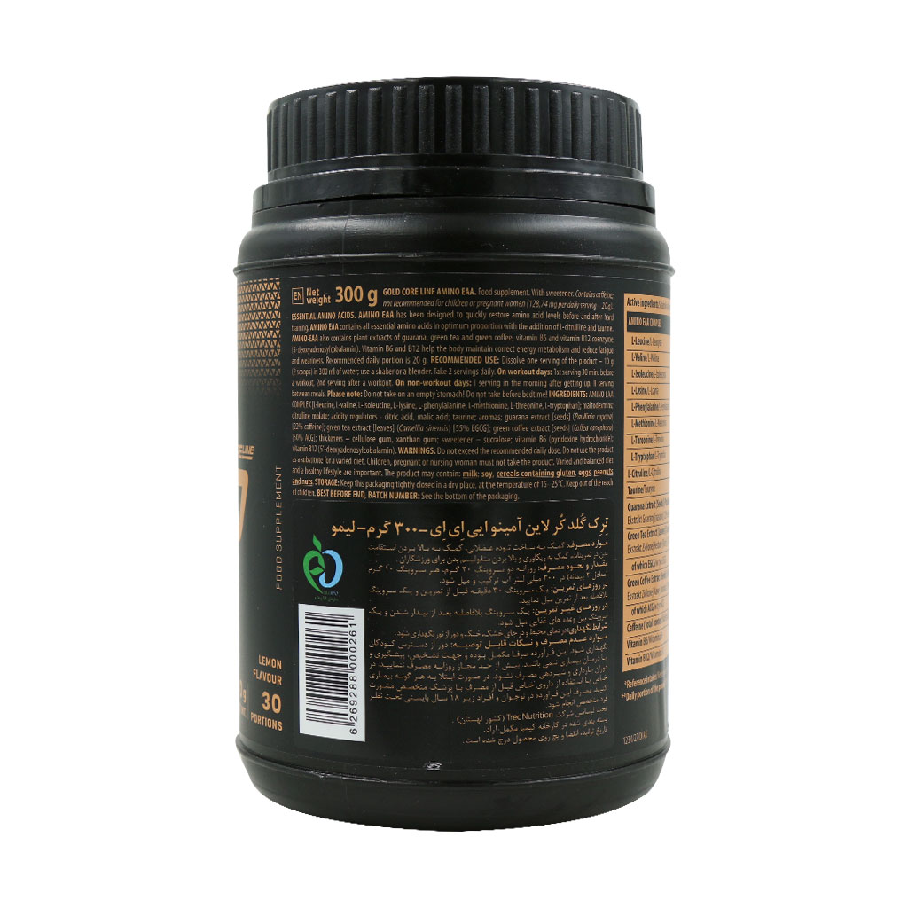 پودر آمینو EAA گلد کر لاین ترک نوتریشن شامل تمامی آمینواسیدهای ضروری به نسبت کافی بوده که به ساخت توده عضلانی، بالا بردن استقامت بدن در تمرینات و ریکاوری بعد از تمرین کمک میکند.