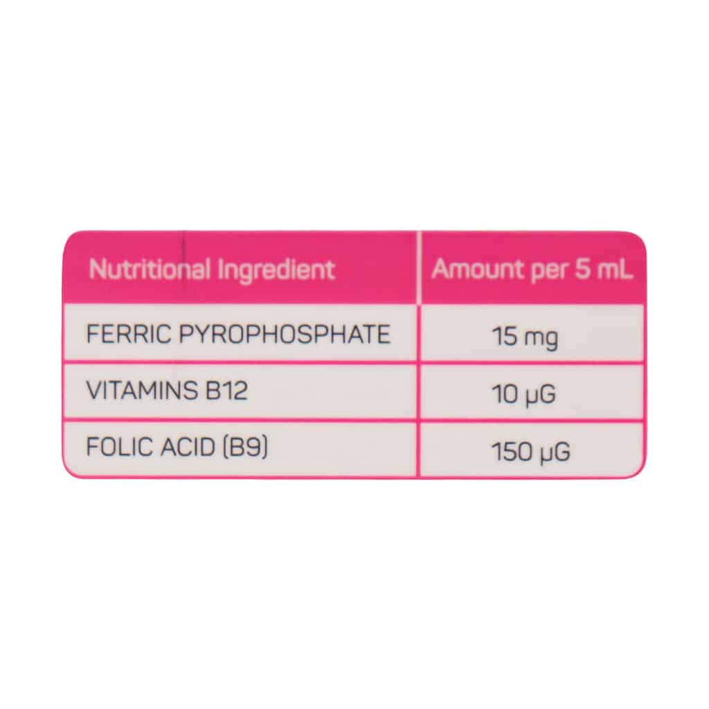 - فریک پیروفسفات سوکرولیپوزومال: فریک پیروفسفات منبع غنی از آهن و فسفر است. دریافت مقادیر کافی از آهن با توجه به میزان نیاز در هر دوره از زندگی در حفظ سلامتی نقش بسزایی دارد. آهن برای پیشگیری از کم خونی و تقویت سیستم ایمنی ضروری است. ساختار لیپوزومال و ماتریس سوکروز استر علاوه بر پایداری بیشتر در دستگاه گوارش منجر به جذب بالاتر آن از روده میشود.