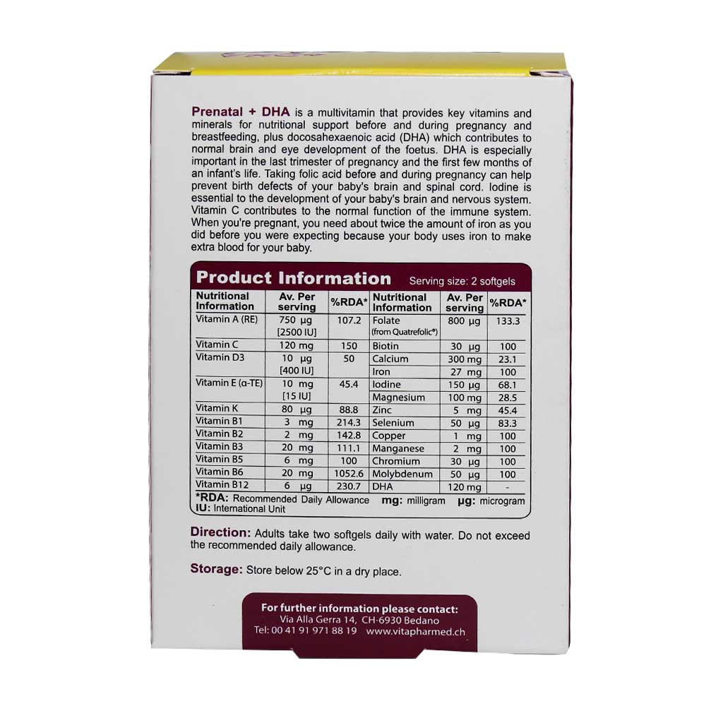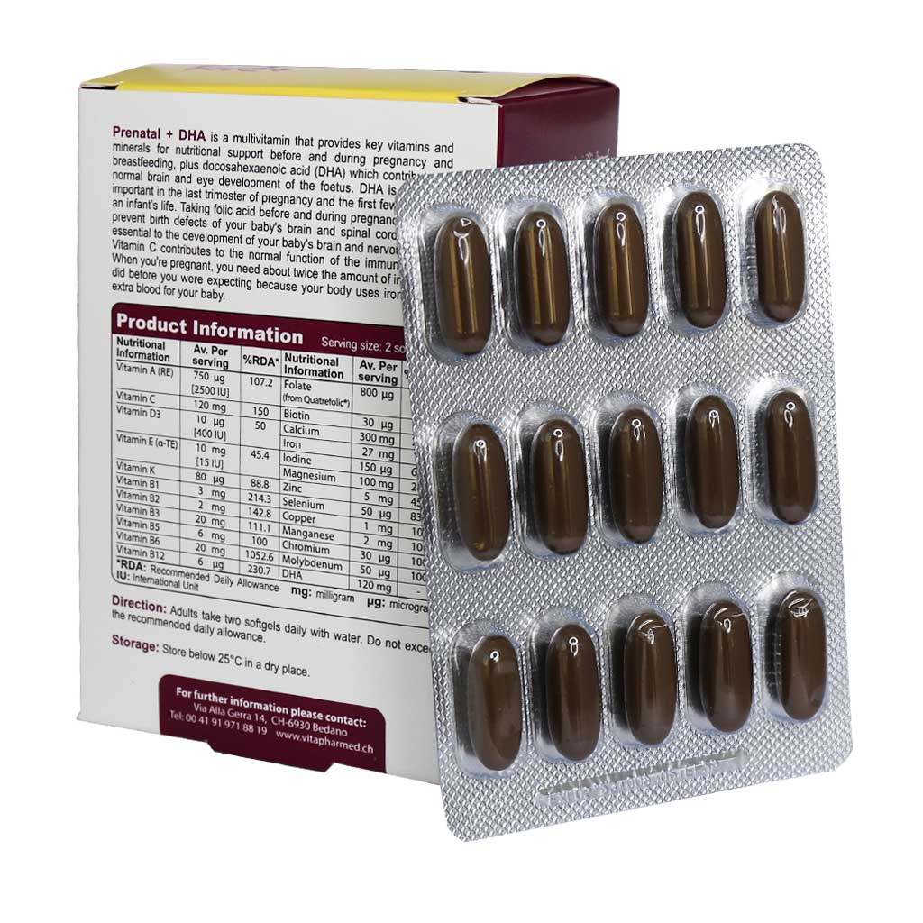 سافت ژل پریناتال پلاس دی اچ ای ویواتیون با داشتن انواع ویتامین، مینرال و DHA یک مکمل مناسب جهت حفظ سلامت مادر و جنین در دوران بارداری و شیردهی است.