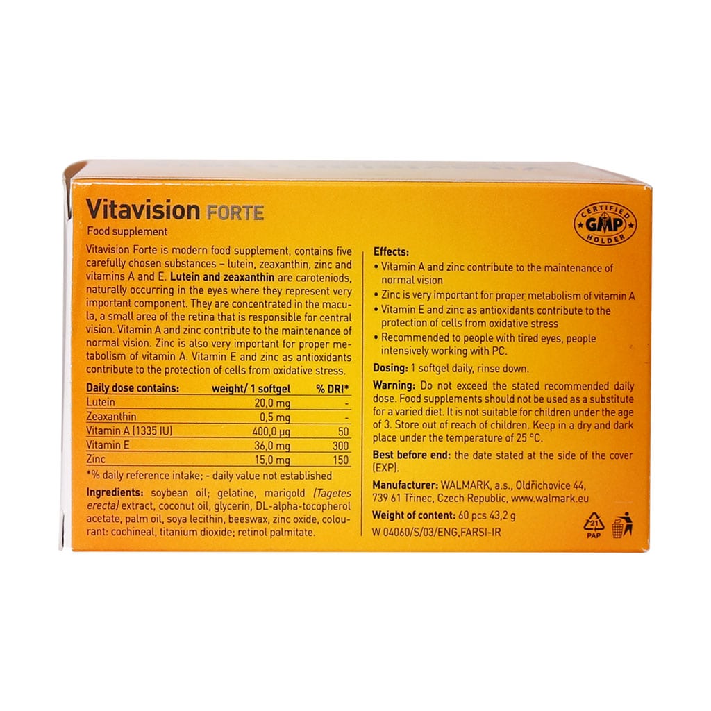 سافت ژل ویتاویژن فورت والمارک یک مکم غذایی ویژه شامل 5 ترکیب لوتئین، زیزانتین، روی و ویتامینهای A و E است که به دقت انتخاب شدهاند. لوتئین و زیزانتین ترکیبات کاروتنوئیدی هستند که به طور طبیعی در ساختار چشمها وجود داشته و نقش مهمی را به عنوان ترکیبی موثر در بینایی ایفا میکنند. این دو ترکیب در ماکولا که بخش کوچکی از رتینا (شبکیه چشم) را تشکیل داده و مسئول دید مرکزی چشمهاست، تجمع یافتهاند.